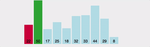 3. 반복 : 이 과정을 전체 배열이 정렬 될 때까지 반복함
