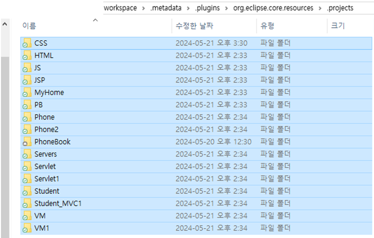 (**단 위 경로가 아닌 다른 폴더 안에 있는 '.project' , '.classpath' 는 중요한 설정파일이니 지우면 안됨)