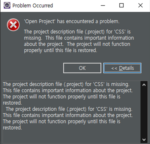 이 오류 메세지는 eclipse 같은 IDE에서 프로젝트 설정 파일인 '.project' 파일이 누락 되었을 때 발생하는 오류지만